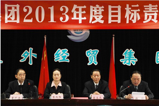 集團(tuán)總經(jīng)理趙彬與集團(tuán)公司所屬20多個(gè)經(jīng)營(yíng)單位簽訂了2013年經(jīng)營(yíng)目標(biāo)責(zé)任書(shū)。