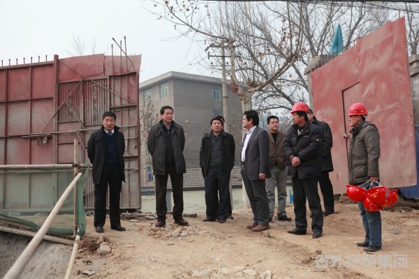 集團公司董事長肖玉龍(右二)、副總經(jīng)理惠宏軍(右三)在明珠巷3號院項目視察