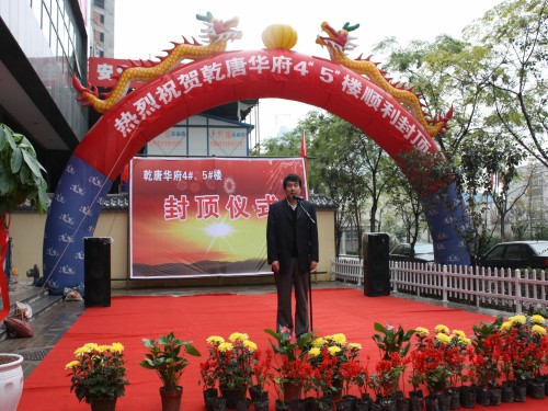 2010年10月26日,乾唐華府30層4#、5#住宅樓及地下車庫工程舉行了封頂儀式。集團公司總會計師劉晏出席,集團公司副總工程師、建設(shè)工程公司總經(jīng)理劉相杉,集團辦公室主任梁平安以及集團公司項目承建單位建設(shè)工程公司等人員到會參加。集團公司總會計師劉晏在儀式上代表集團公司作了發(fā)言講話。