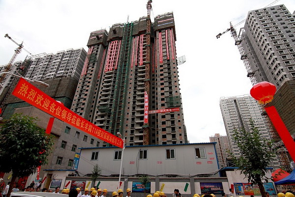 11號(hào)樓于2009年3月開(kāi)工以來(lái),西三爻村改造建設(shè)發(fā)展公司、西漢置業(yè)公司及我集團(tuán)公司的廣大員工大力弘揚(yáng)頑強(qiáng)拼搏精神,戰(zhàn)高溫、斗嚴(yán)寒,重質(zhì)量、講信用,科學(xué)施工,規(guī)范管理,僅一年零三個(gè)月便完成了主樓的封頂,為小區(qū)整體項(xiàng)目的早日建成奠定了良好基礎(chǔ)。