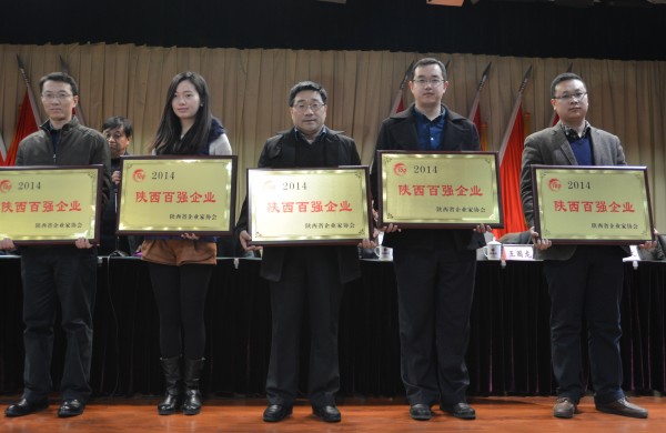 集團(tuán)公司黨委副書記、總經(jīng)理惠宏軍參加會議并領(lǐng)取“2014陜西百強(qiáng)企業(yè)”獎牌和證書。