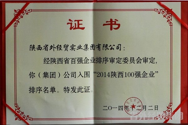 集團(tuán)公司再次入圍陜西企業(yè)100強(qiáng)名單,排名較去年第58位提升至第53位。