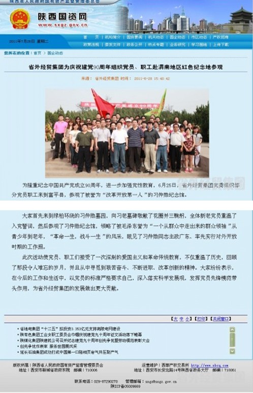 省國(guó)資委網(wǎng)站登載我集團(tuán)在紅色紀(jì)念地舉行黨組織活動(dòng)的情況