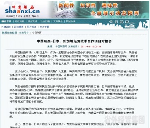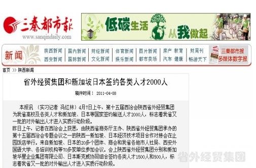 西安各大主流媒體報(bào)道集團(tuán)公司西洽會期間承辦中國陜西-日本、新加坡經(jīng)濟(jì)技術(shù)合作項(xiàng)目對接會”情況
