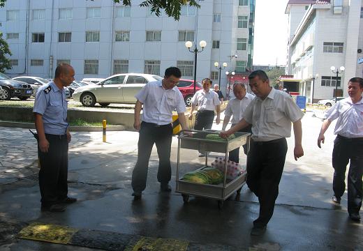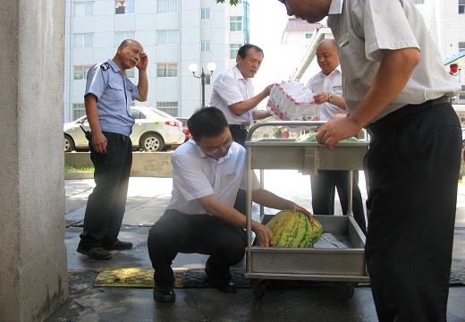 連日高溫,驕陽似火,止園飯店組織開展送清涼慰問活動(dòng)。7月22日上午,飯店黨委書記金伊博和班子成員帶著西瓜、礦泉水來到花房、飯店南北門和職工灶等工作崗位,慰問冒著酷暑?yuàn)^戰(zhàn)在一線的員工。并一再囑咐他們注意防暑降溫和自身安全防護(hù)。慰問給大家?guī)砹岁P(guān)懷,帶來了絲絲清涼。