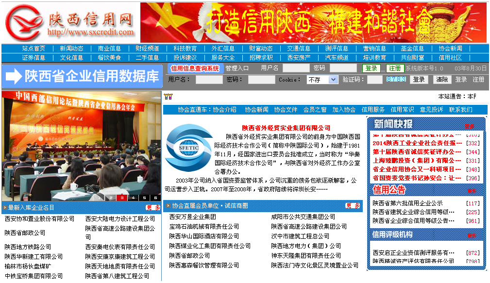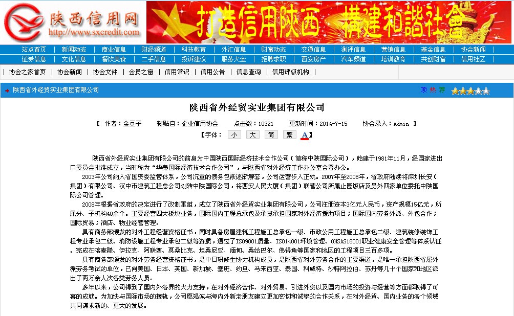 陜西省外經貿實業(yè)集團有限公司榮登陜西信用網首頁