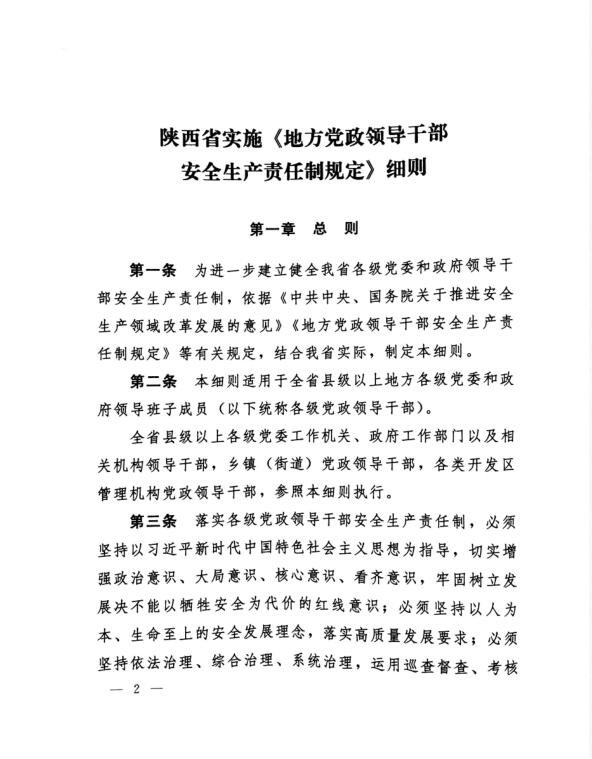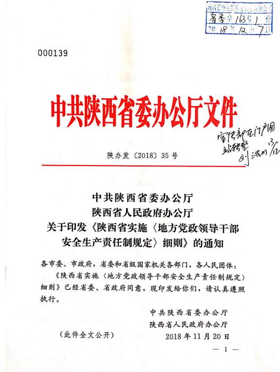 中共陜西省委辦公廳 陜西省人民政府關(guān)于印發(fā)《陜西省實(shí)施〈地方政府領(lǐng)導(dǎo)干部安全生產(chǎn)責(zé)任制規(guī)定〉細(xì)則》的通知