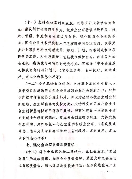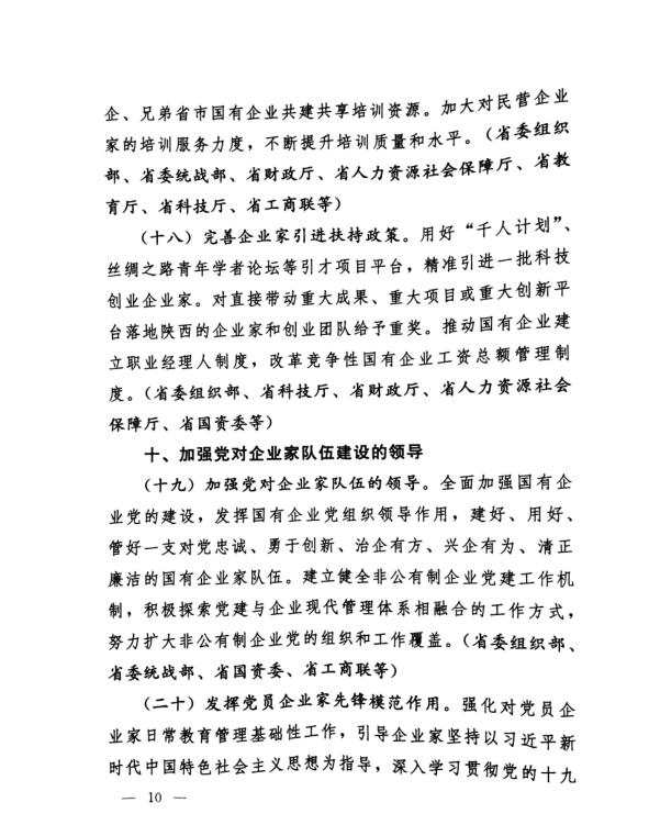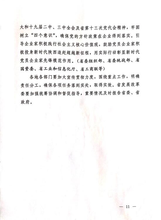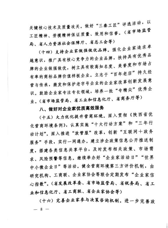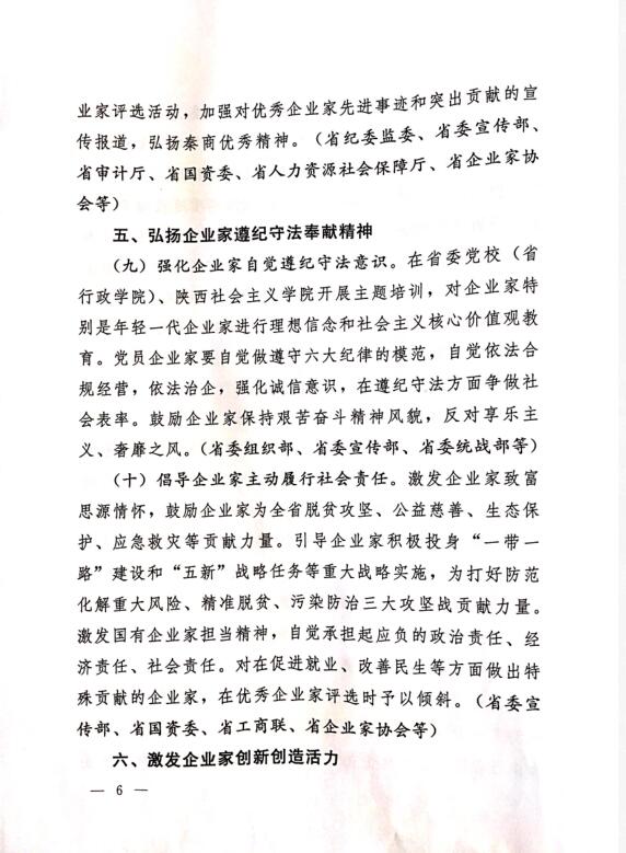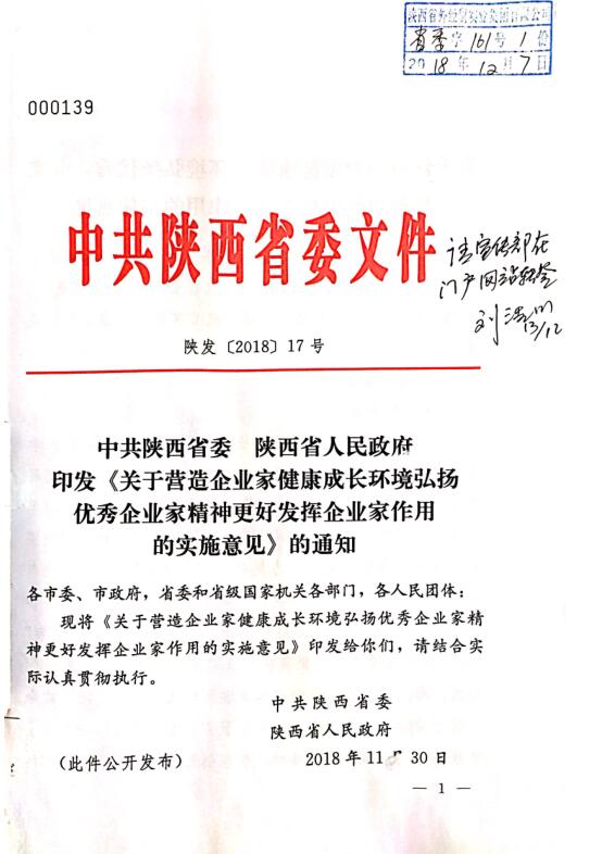 中共陜西省委 陜西省人民政府印發(fā)《關(guān)于營(yíng)造企業(yè)家健康成長(zhǎng)環(huán)境弘揚(yáng)優(yōu)秀企業(yè)家精神更好發(fā)揮企業(yè)家作用的實(shí)施意見》的通知