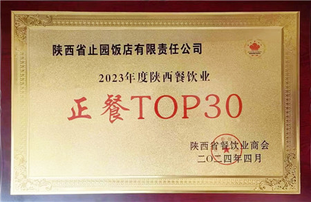 陜外集團(tuán)止園飯店榮獲 “2023年度陜西餐飲業(yè)正餐TOP30”榮譽(yù)稱號
